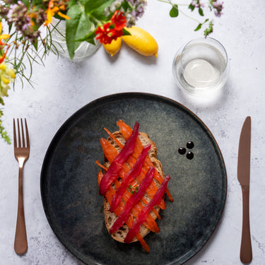 Our traditional & beetroot-cure recipe cold smoked trout.