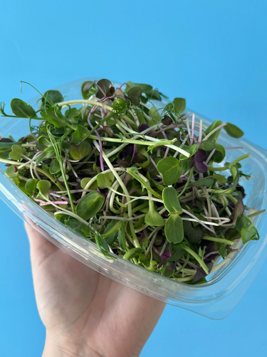 A fantastic micro salad mix of Pea shoots, sunflower and radish micro greens. Deliciously vibrant, fresh flavours with a crunchy texture, perfect for a variety of meals and dishes.